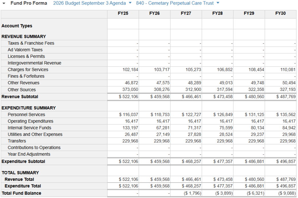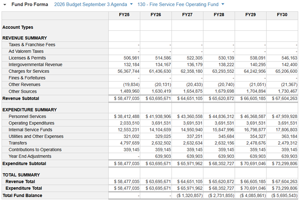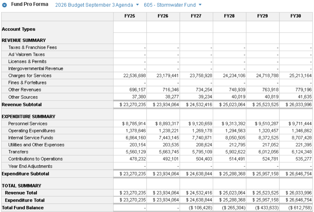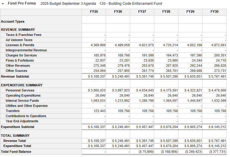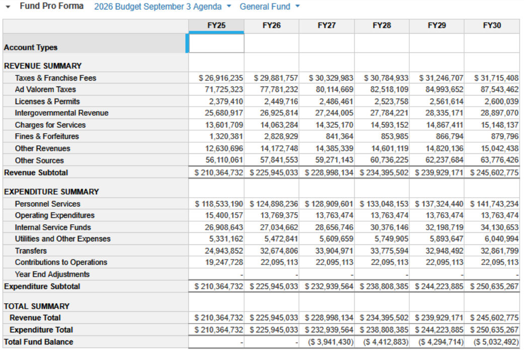 To achieve the City Commission’s priorities, the FY26 budget continues efforts to streamline operations, consolidate work groups, and utilize cutting-edge technology to improve efficiency and effectiveness. At the June workshop, staff presented a proposed budget that included expense reductions. These reductions included process and technology improvements, as well as real estate lease management. All of these efforts to reduce expenses have been made to maintain current output and service levels and have resulted in an FY26 balanced budget.